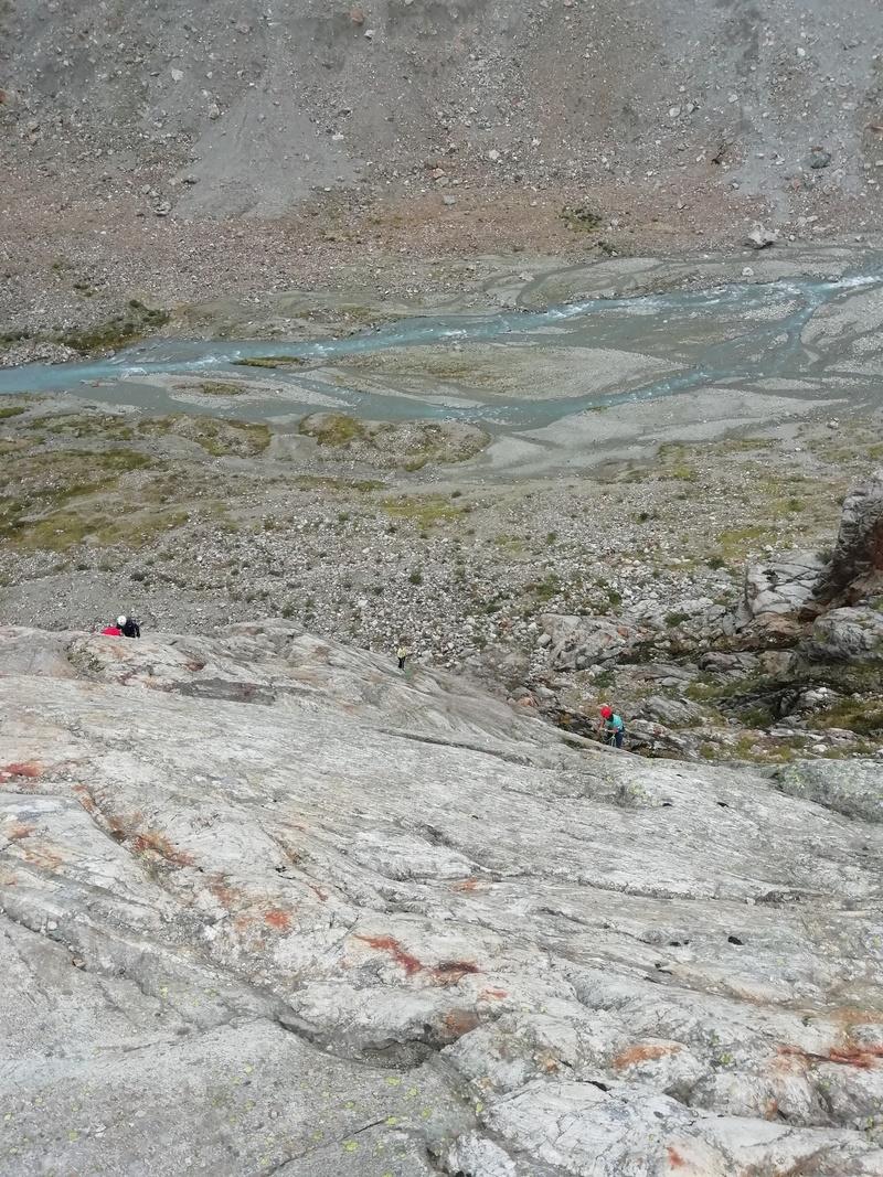 An den folgenden zwei Tagen setzen wir das Gelernte direkt um: Wir klettern wunderschöne Mehrseillängenrouten in der Umgebung des Steingletschers, üben effiziente Abläufe und vertiefen die Technik. So festigst du deine Routine und kannst, wenn du möchtest, auch selbst einmal vorsteigen, um Vertrauen in Material und Bewegung zu gewinnen. Am zweiten Abend hält unsere Bergführer:in einen spannenden Theorieinput zu Wetterkunde, Rettung und Erster Hilfe – Wissen, das du am nächsten Tag praktisch anwenden kannst.