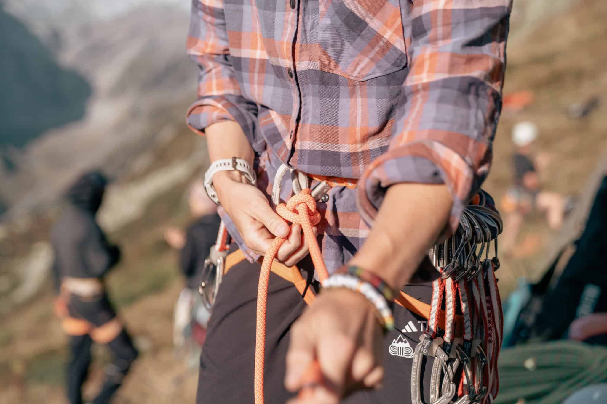 Handling mit dem Seil während des Kletterns