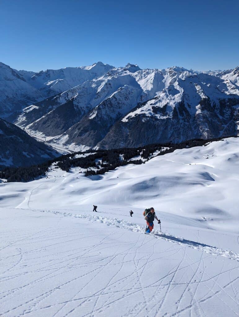 - Beherrschen der Skitourentechnik mit dessen Basics (Fellen, Spitzkehren).