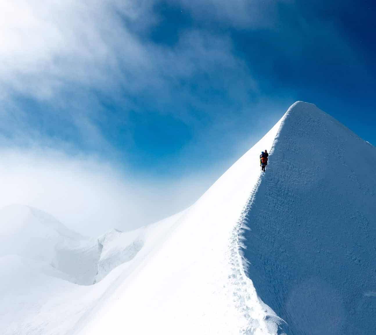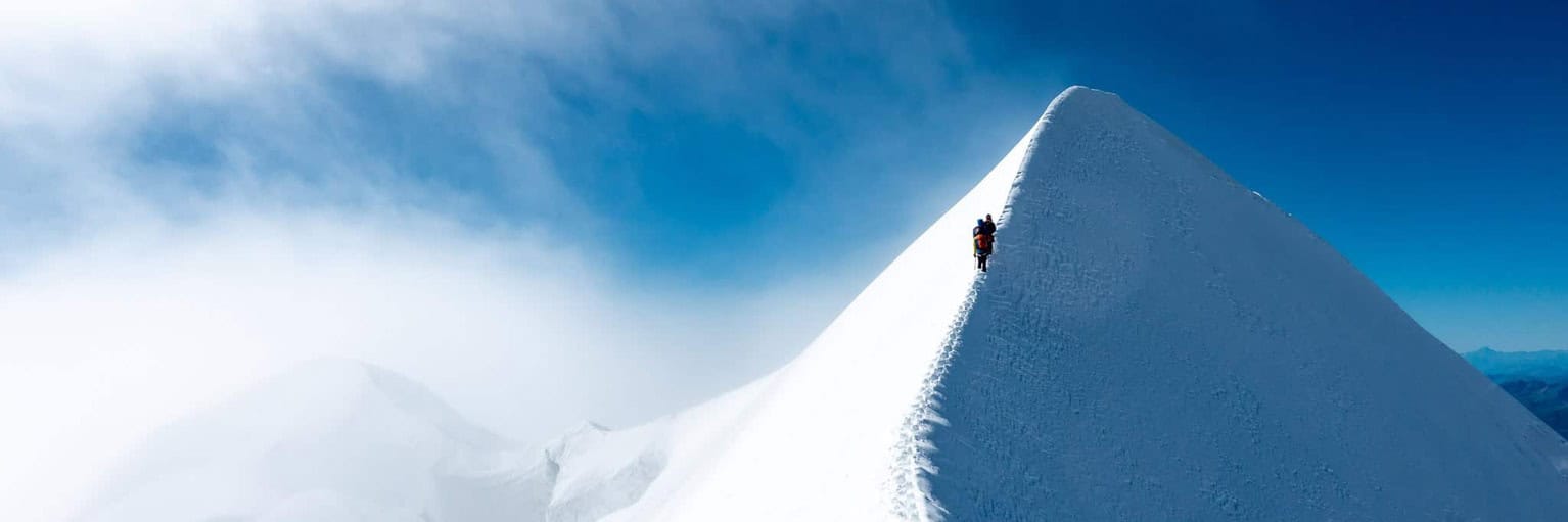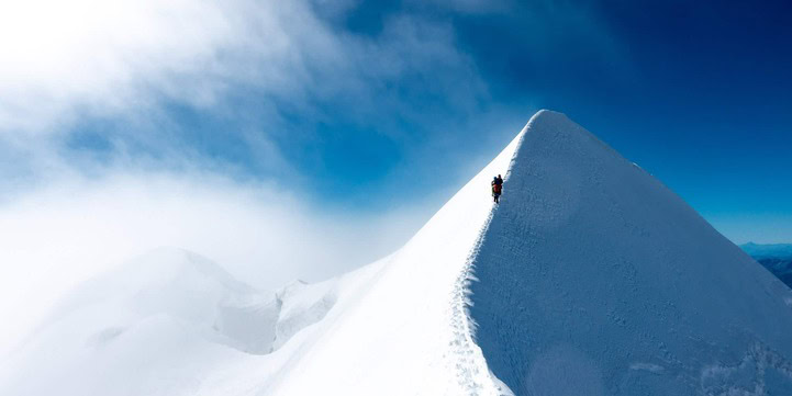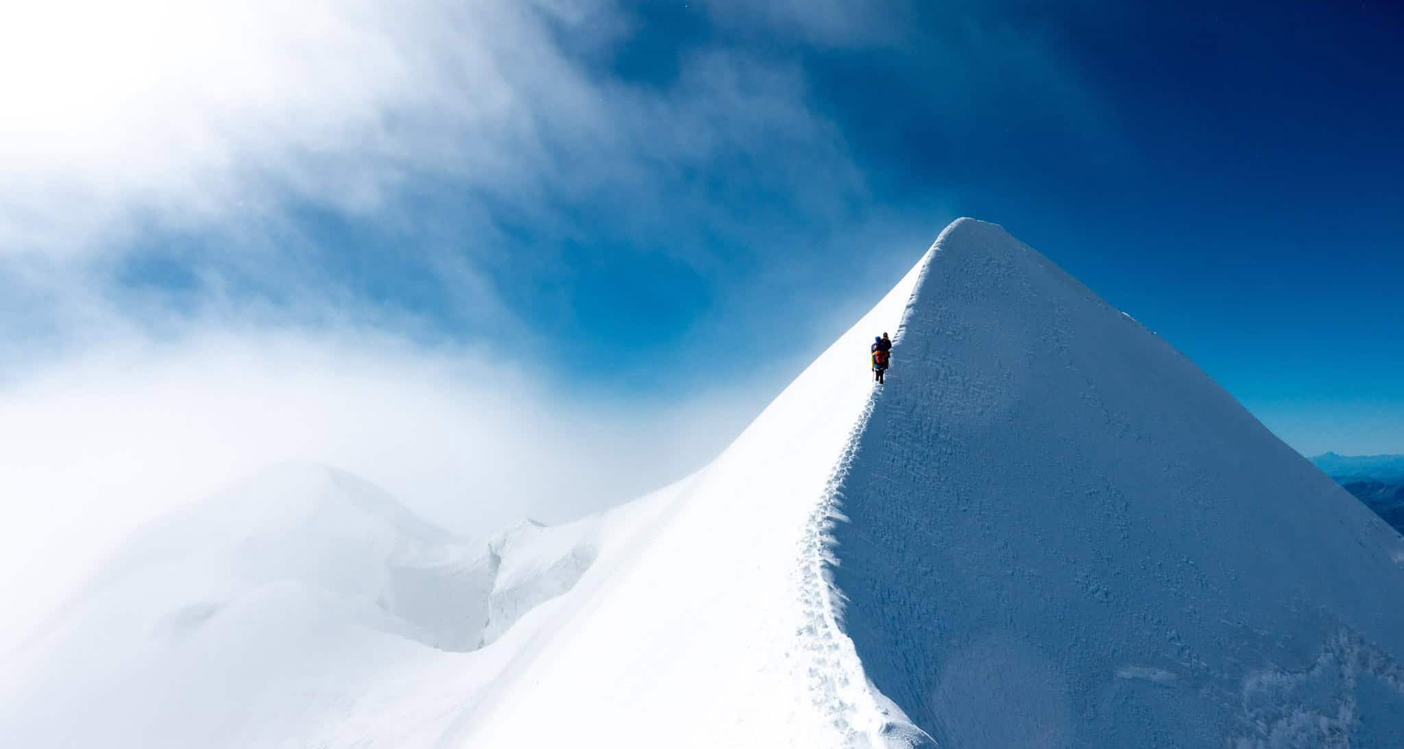 Der Aufstieg zum Naso 4100m beinhaltet leichte Felskletterei. Nach dem Fels, steigen wir im Firn und Eis cirka 45° die Firnflanke hoch.