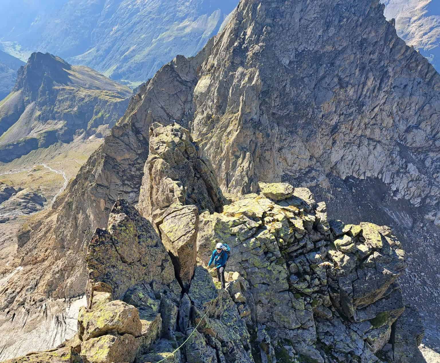 Du hast den gesamten Ablauf des Mehrseillängenkletterns nochmals bewusst repetiert, Sicherheit in den Abläufen gewonnen und bist bereit, das Gelernte in einer einfachen Tour anzuwenden. Am Abend planst du gemeinsam mit der Gruppe die Tour für den nächsten Tag – unter Einbezug von Routenwahl, Wetter und Zeitmanagement.Kursinhalt: