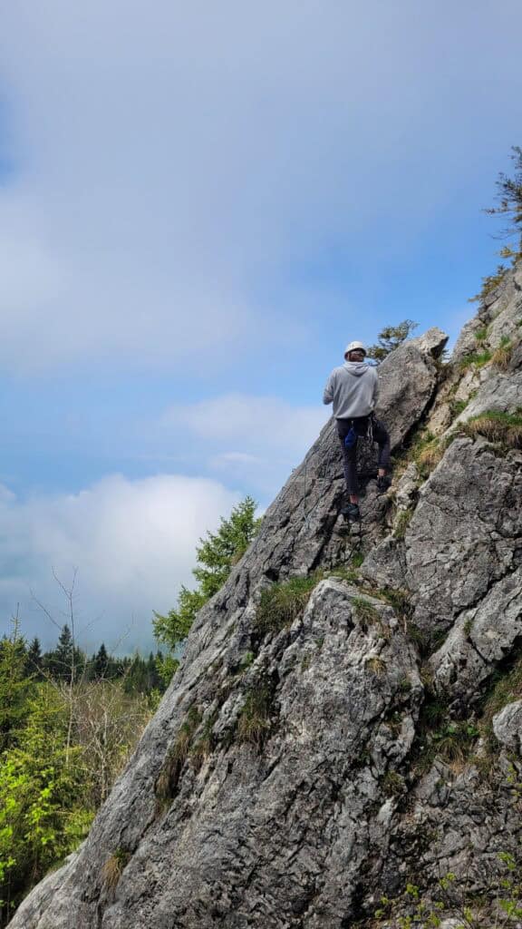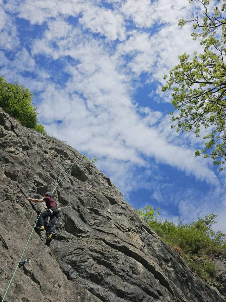 Learn sport climbing with us and get inspired! In our two-day basic rock climbing course in the Solothurn Jura, we teach you everything you need to be safe and independent in the climbing garden. The Jura region around Solothurn offers ideal conditions for getting started in rock climbing with its striking limestone cliffs, varied climbing gardens and fantastic views. Between beautiful limestone cliffs and idyllic panoramas, you will learn how to climb directly on the rock - practical, relaxed and surrounded by a unique landscape.