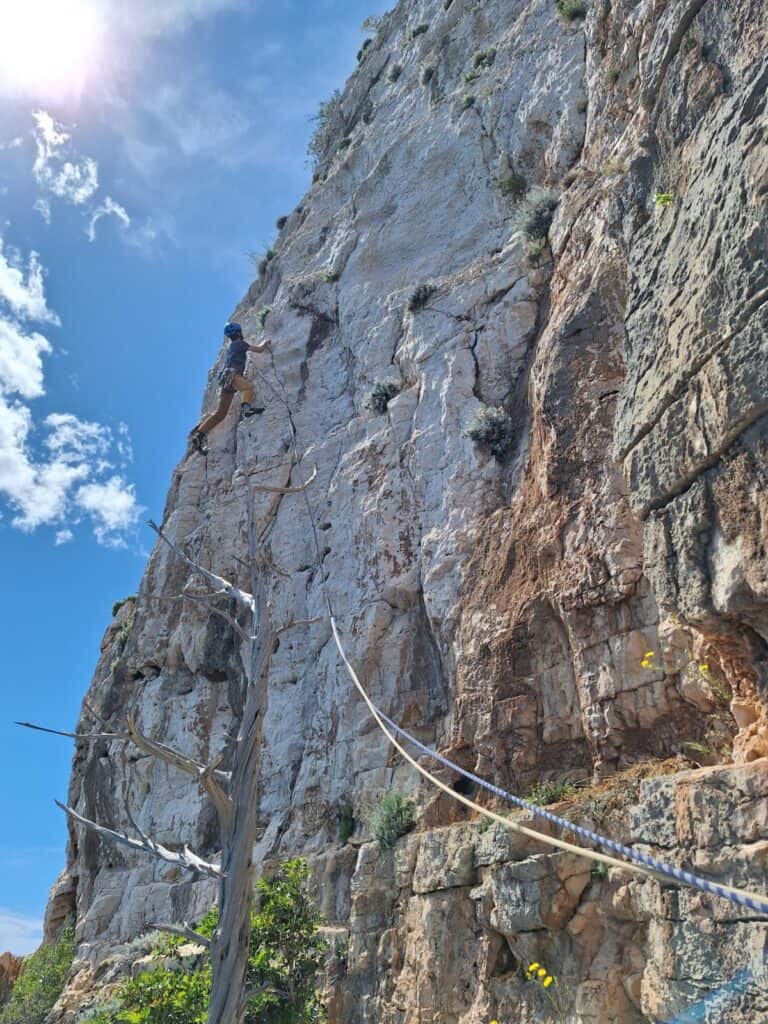 Sardinia is known for its diverse climbing opportunities: impressive, grippy limestone with holes and sinks - often right by the sea. There are suitable routes for every level, and we are mostly in the 4c to 5c range.