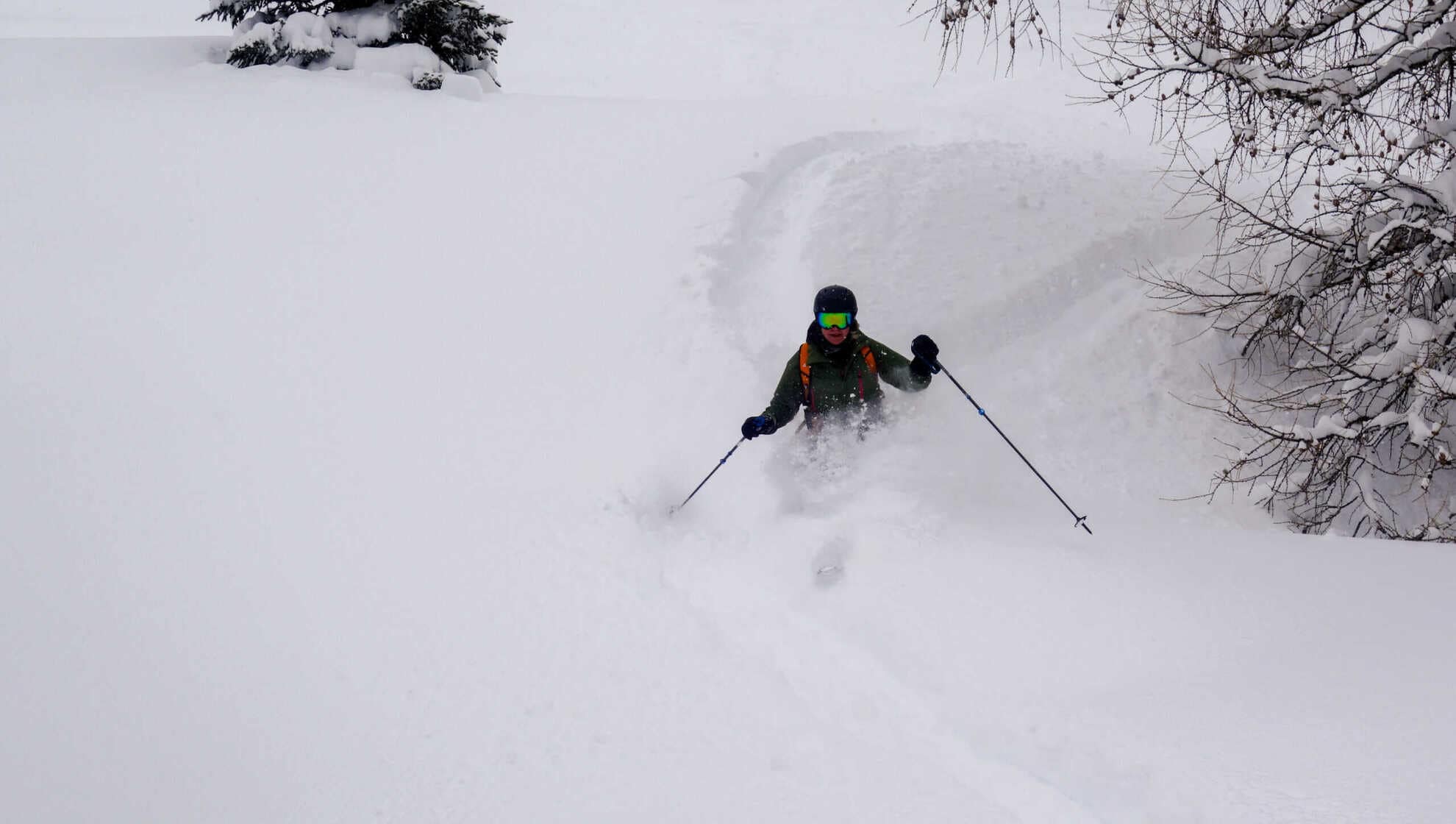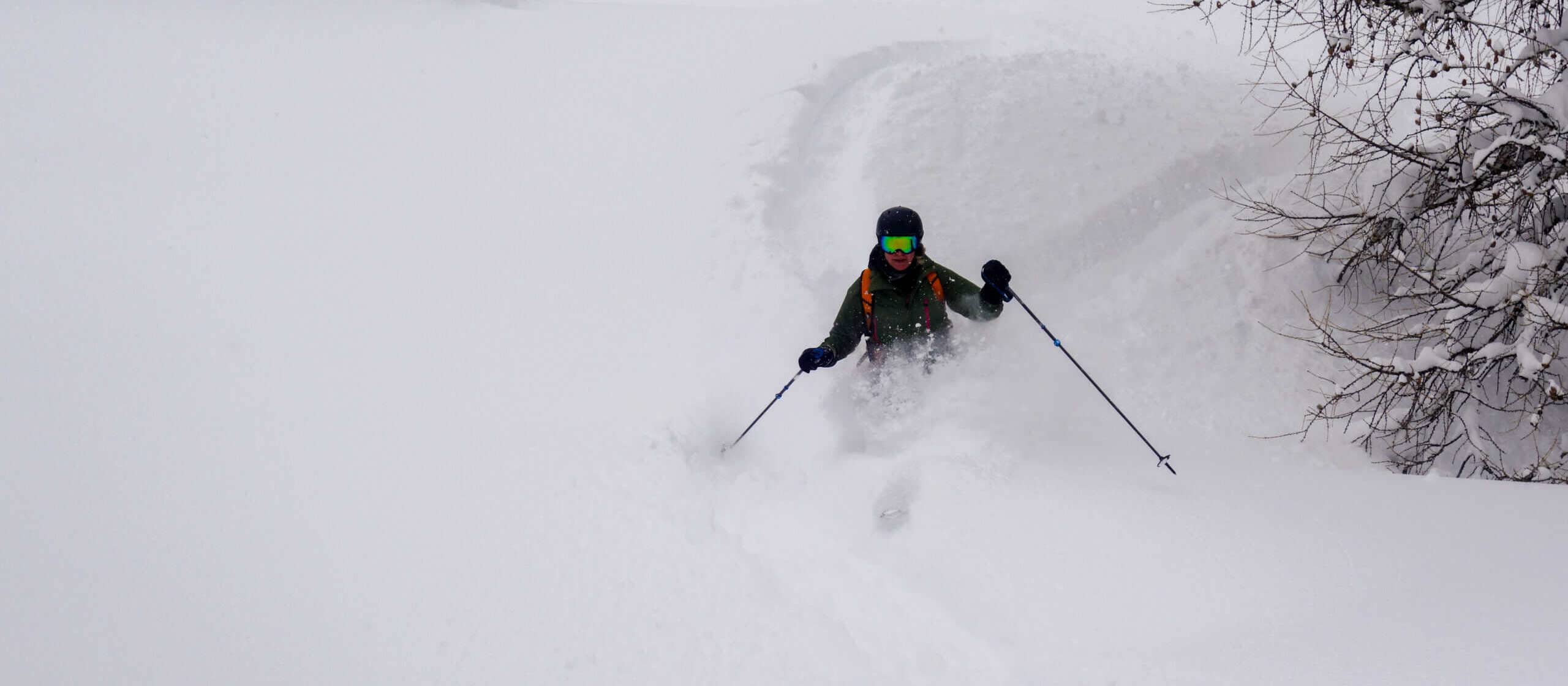 We make 2-3 descents with the cable cars before it brightens up a bit in the afternoon and we look for ascents and new terrain with the skins and enjoy the silence of ski touring.
