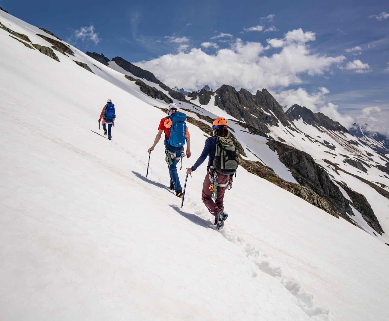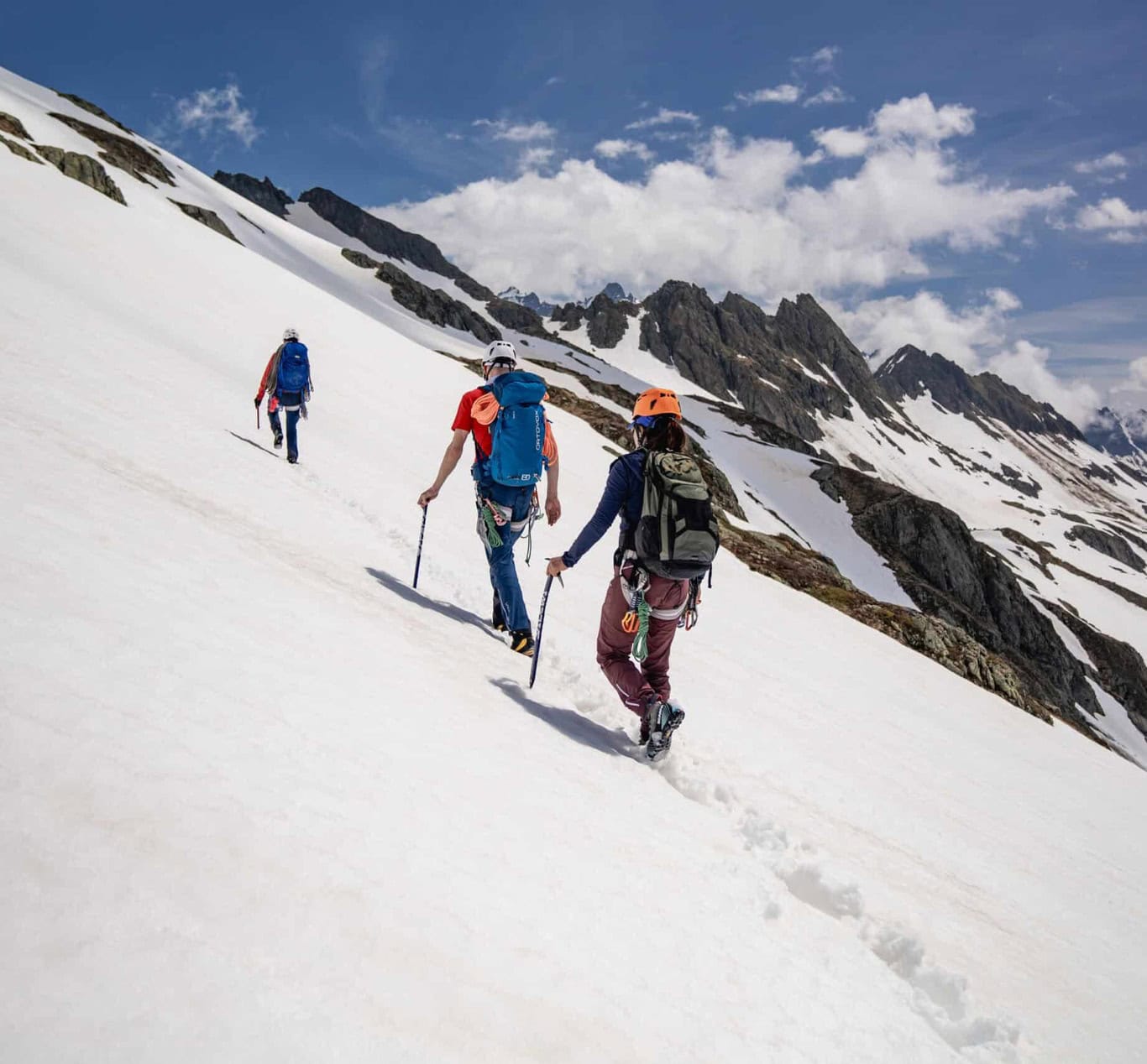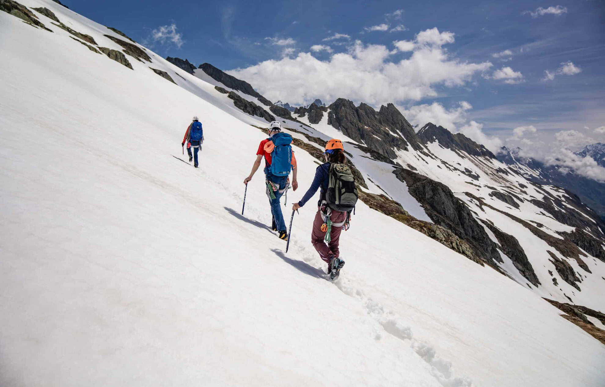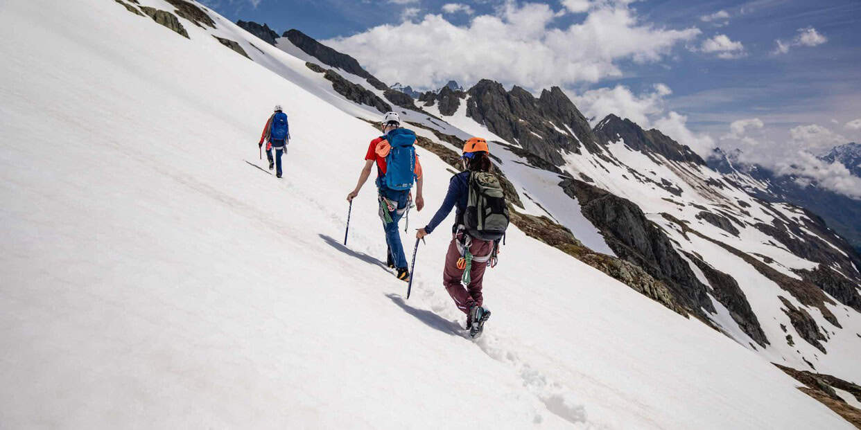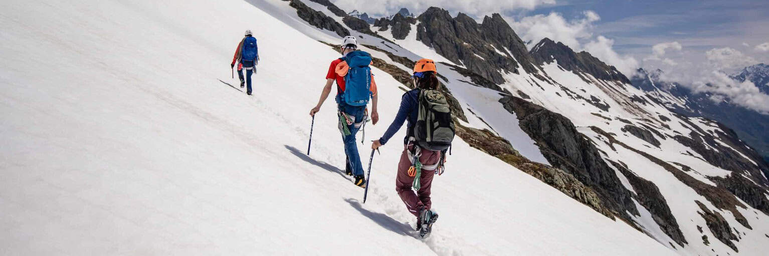 Daily destination: You will learn the basics of mountaineering and gain your first experience on a rope. You will acquire knowledge of techniques that you can use to secure yourself and your rope partner.