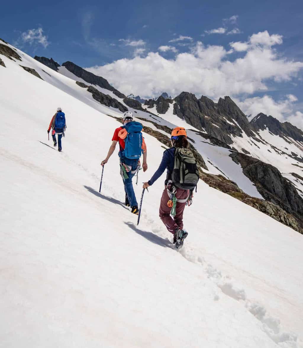 At the end, a challenging tour tailored to your needs awaits us: ice, glacier and rope technique once again. Here you can apply and deepen your knowledge and gain new confidence. We will support you individually so that you can deepen your knowledge and apply it directly.