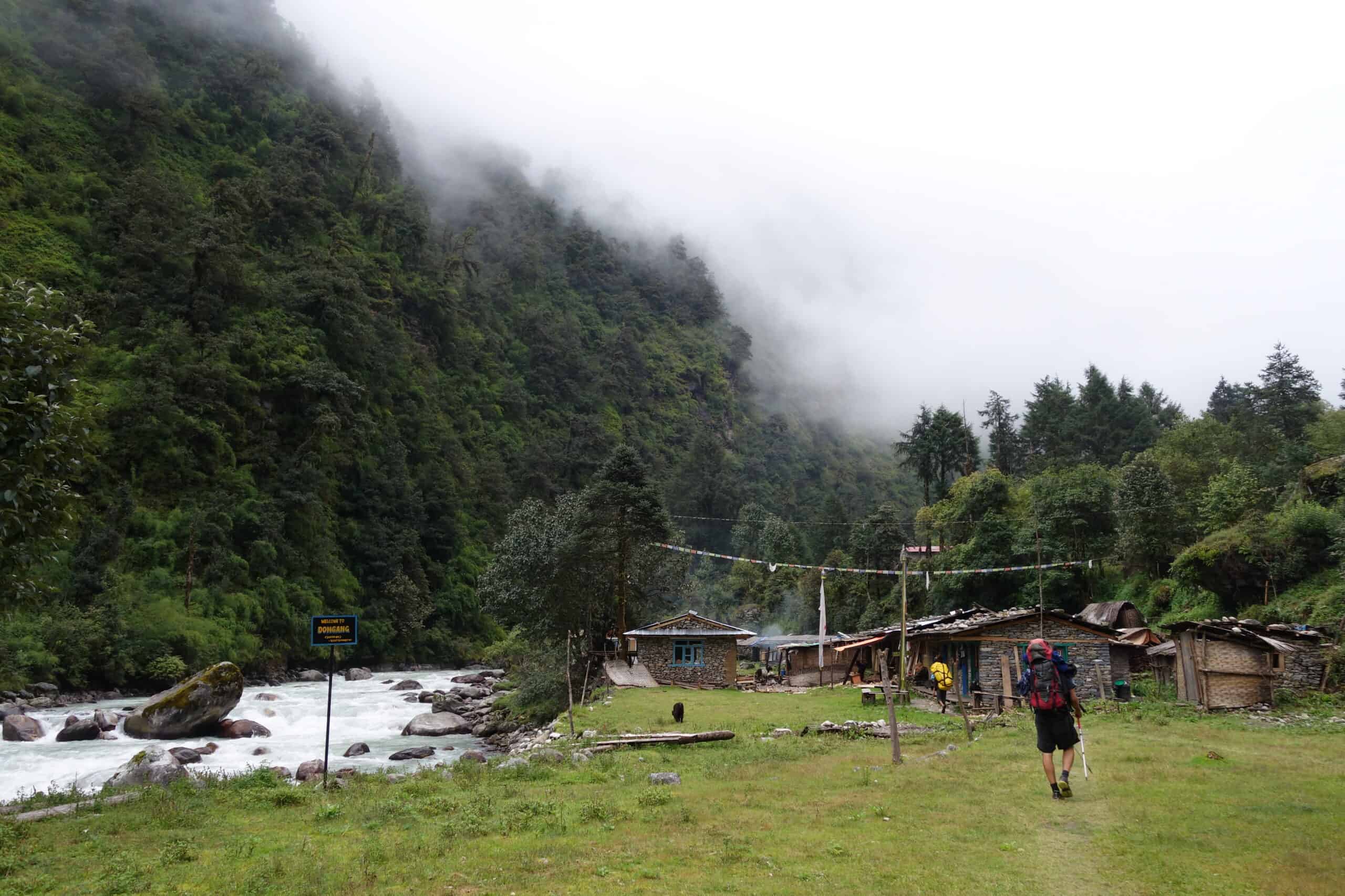 Last part of the car journey and start of the trek. Ascent through rhododendron and bamboo forests over the Kari La Pass. Overnight stay in a lodge in Panggom.