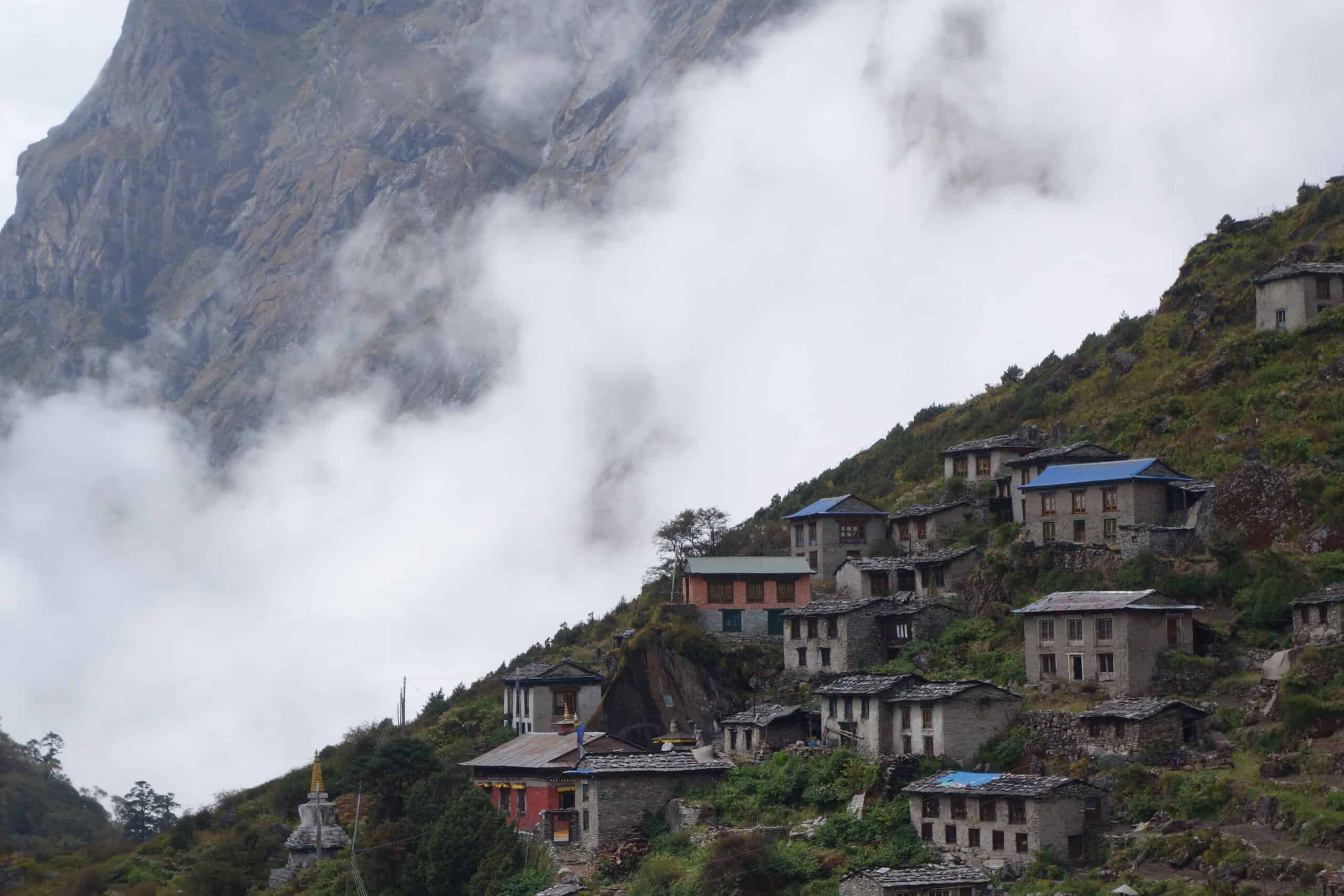 Past the historic Lungsumgba Gompa. Clear change to the alpine surroundings.