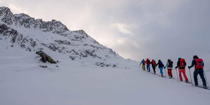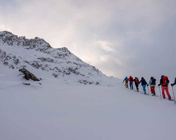 - Mastering the ski touring technique with its basics (skins, hairpin turns).