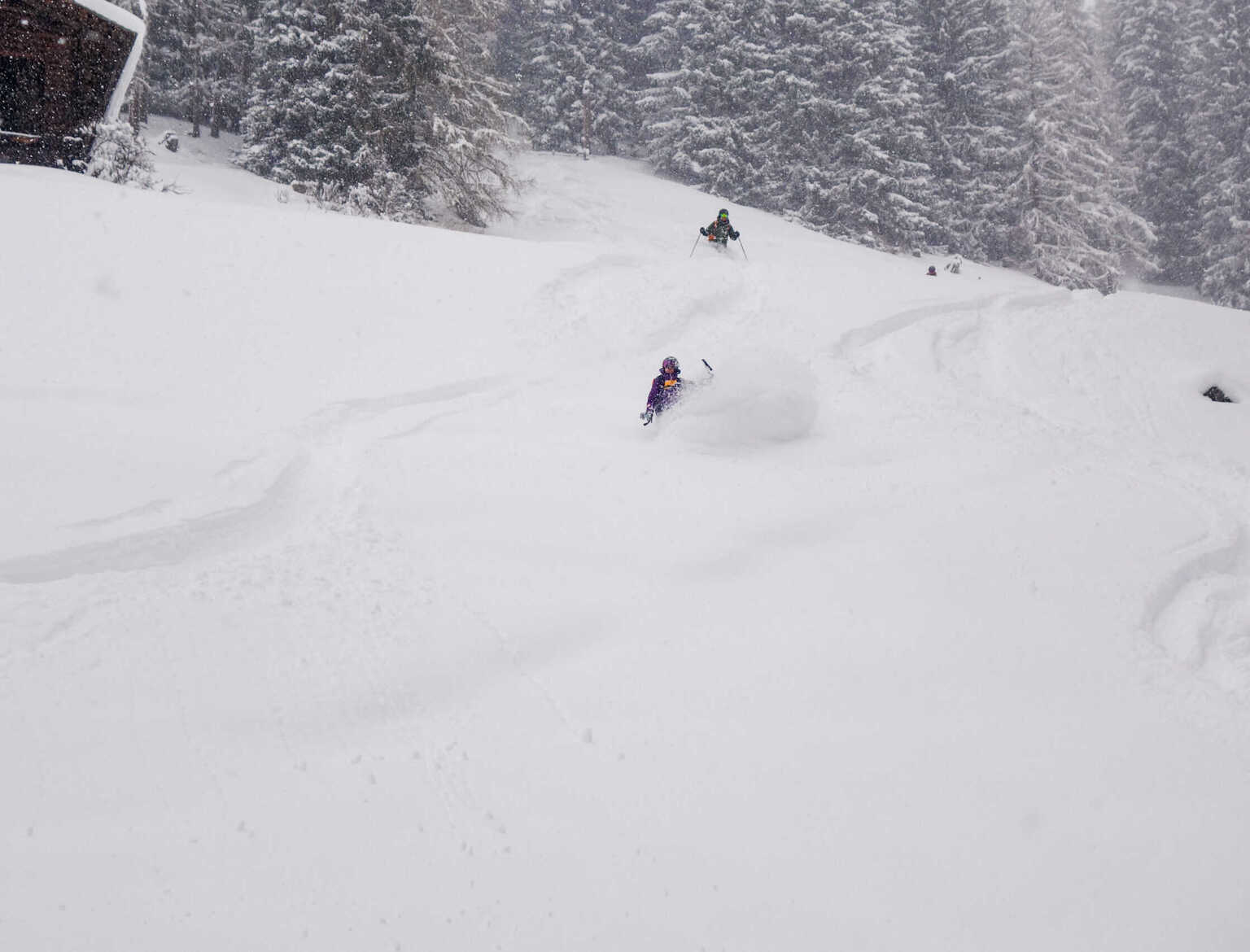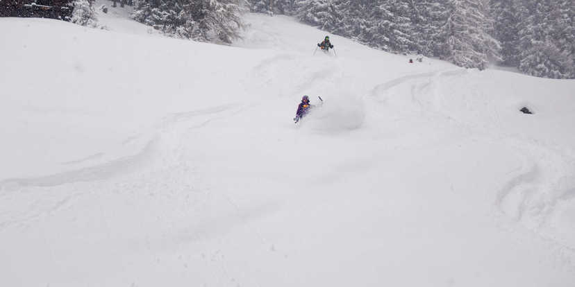 A freshly snow-covered landscape, fine powder and enough snow to playfully dance on our skis between the trees in the Prättigau forest and have great fun. This will probably be one of those days when your grin gets bigger and bigger and you infect others with your good mood after the tour because you come back home so fulfilled. Due to the unstable weather conditions and the high avalanche situation, we seek out the deep snow between sparse trees and contrasting terrain. We make around 800 vertical metres of ascent and significantly more turns and vertical metres of descent. You will find out the exact meeting point in Prättigau by 6 pm tomorrow, Thursday.