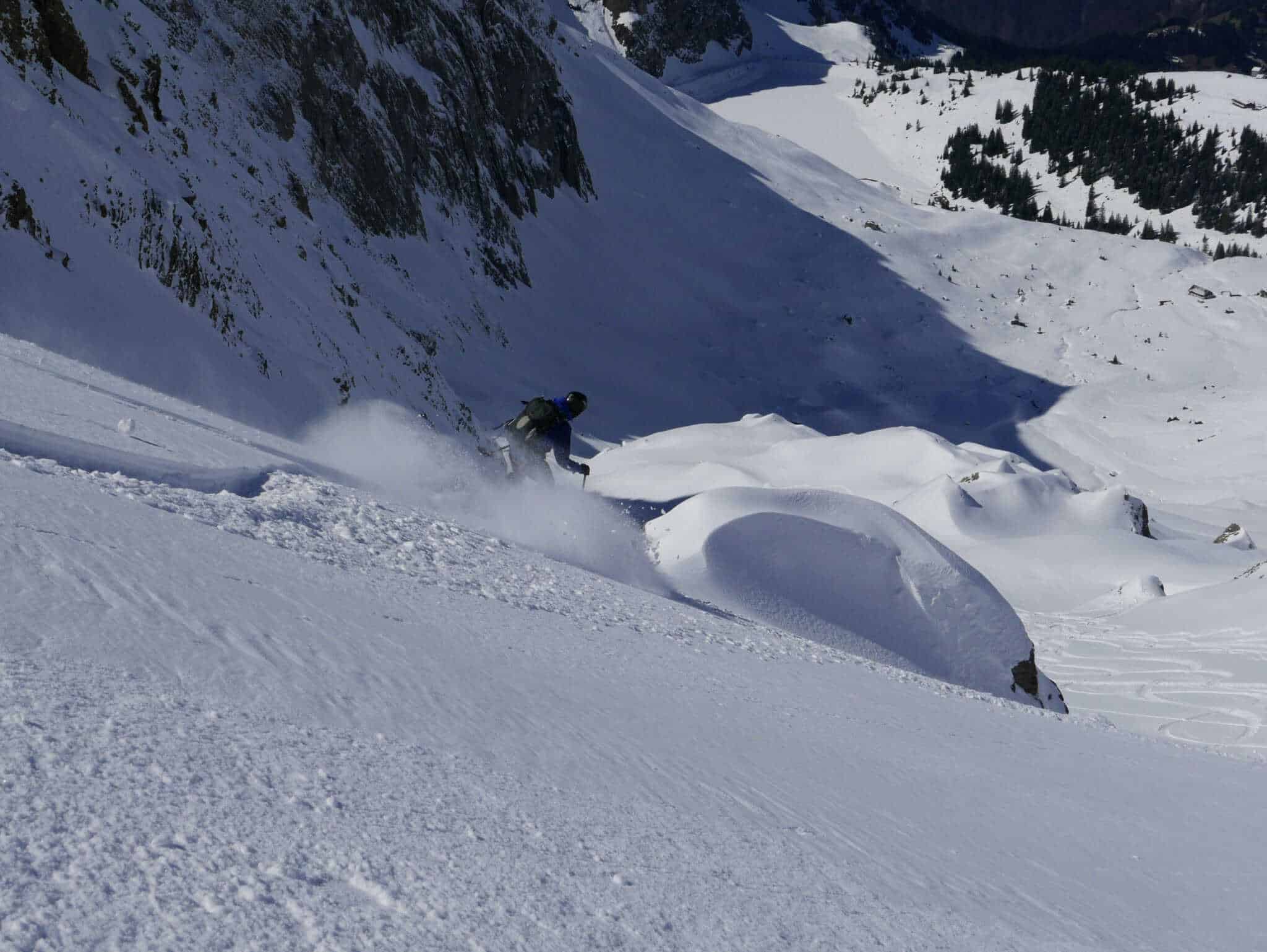 The main season for ski touring and freeriding around Engelberg usually lasts from December to April. The best powder conditions are often found in January and February, while spring, with more stable snow conditions, offers ideal conditions for longer ski tours. Thanks to the height of the Titlis glacier, freeride descents are often possible until late spring.