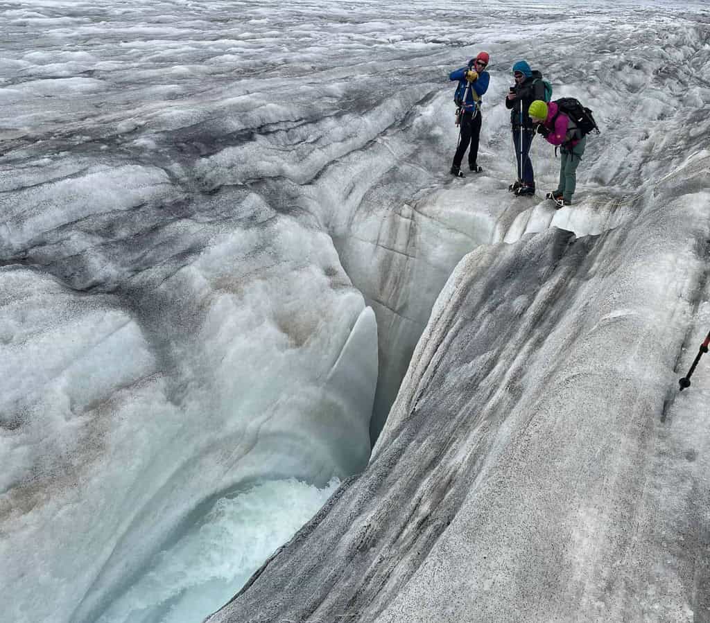 Über weite Gletscher die Natur erleben. Wasser, Schnee und Eis.